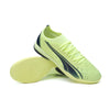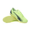 Puma Ultra Match LL IT + Mid football boot for kids. Synthetic laceless boots for use on concrete and parquet pitches. Low-end boots in Fizzy Light-Parisian Night-Blue Glimmer.